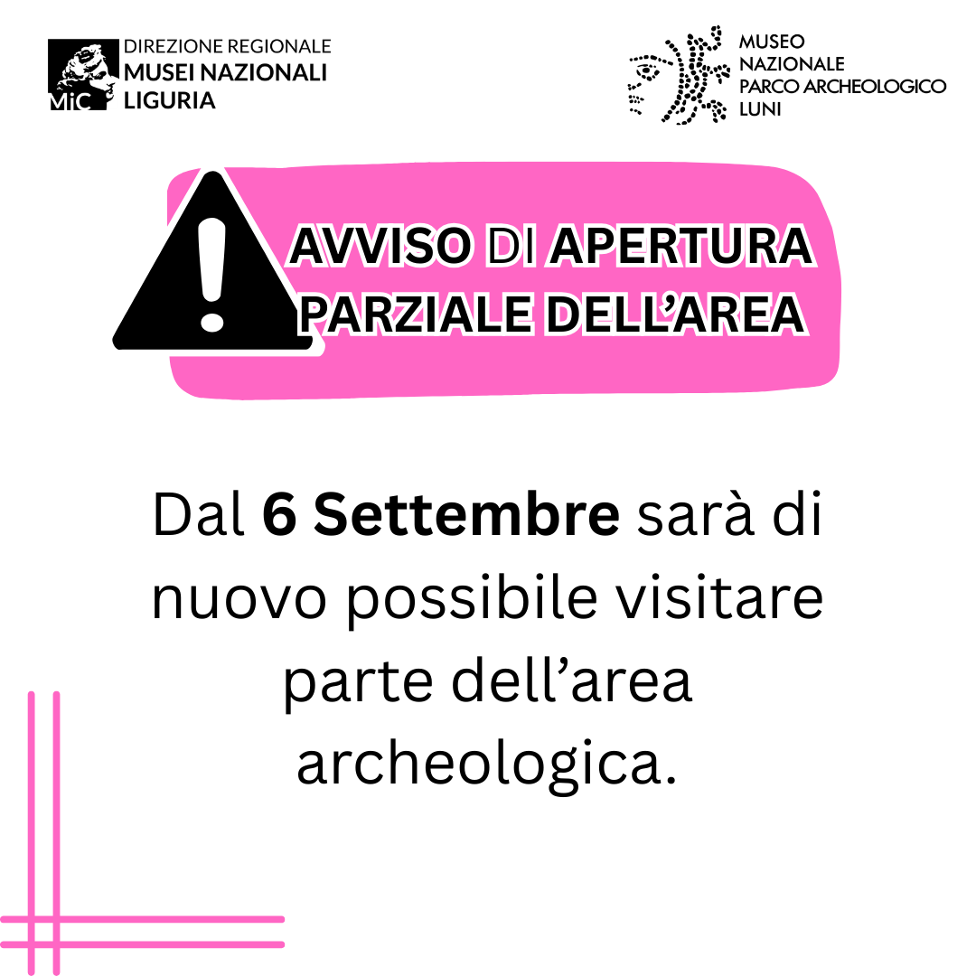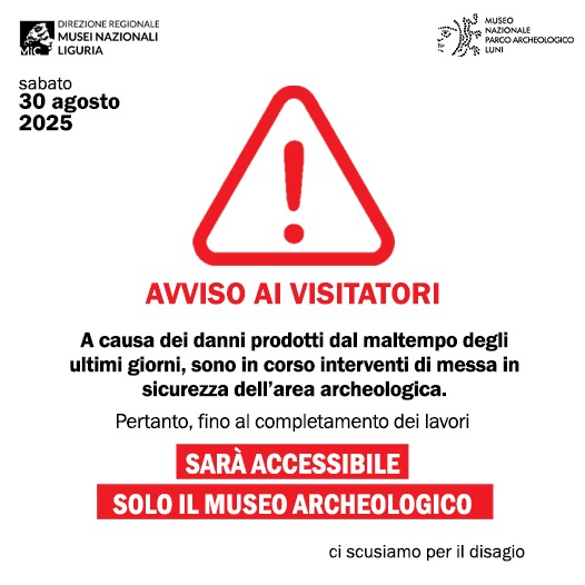 05 settembre 2025 | AVVISO | Dopo alcuni giorni di chiusura dovuta ai danni causati dal maltempo, l'area archeologica 𝗿𝗶𝗮𝗽𝗿𝗲 𝗱𝗮𝗹 𝟲 𝗦𝗲𝘁𝘁𝗲𝗺𝗯𝗿𝗲 con percorso limitato.